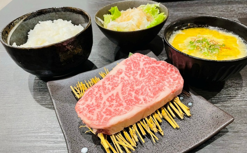 ロースステーキ・サラダ・たまごスープ・ご飯